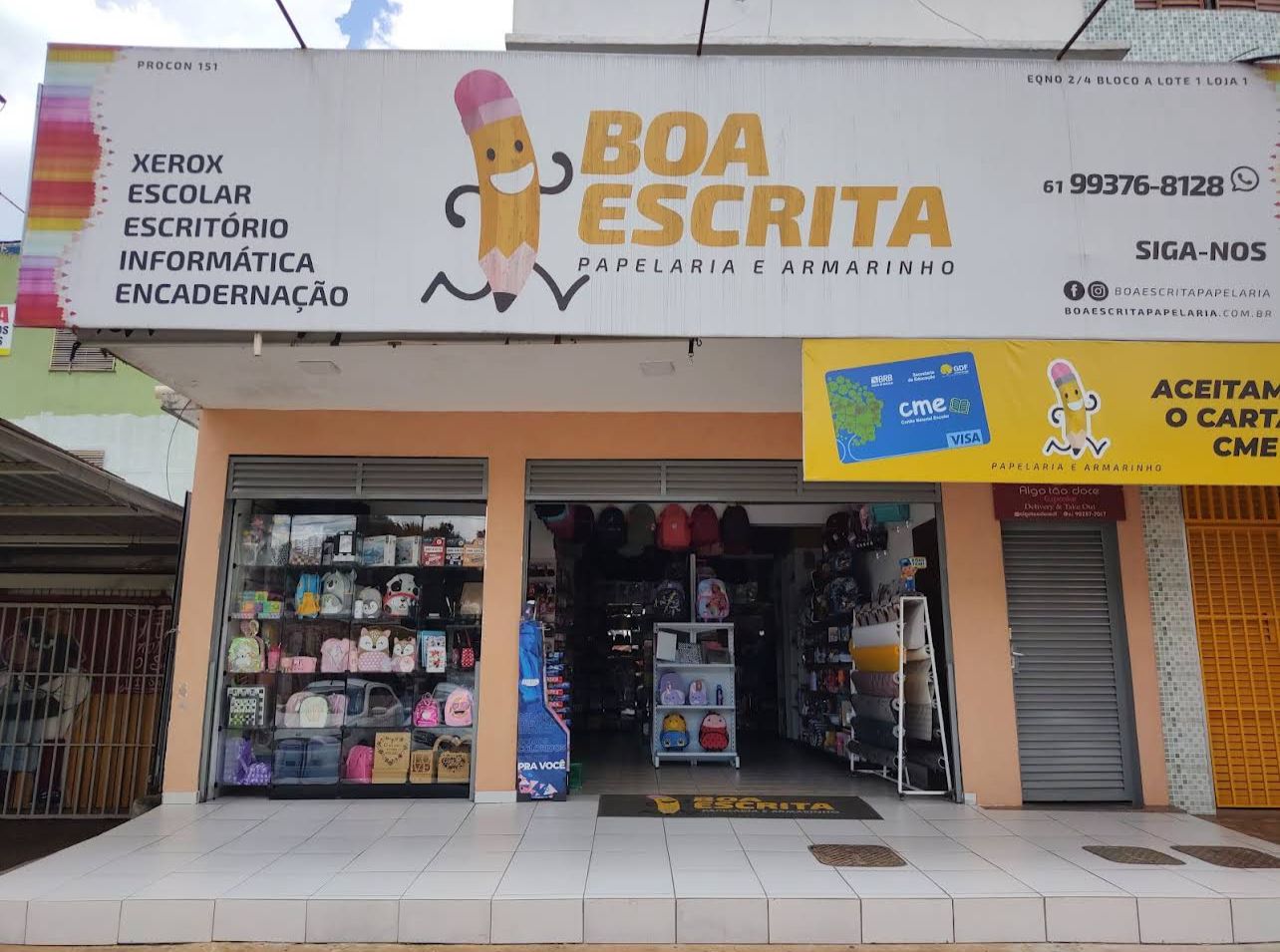 A Boa Escrita Papelaria e Armarinho é uma empresa brasiliense que há mais de uma década atende a comunidade de Ceilândia com qualidade, variedade e confiança. Desde 2011, nosso compromisso é oferecer os melhores produtos de papelaria, materiais escolares, itens de armarinho e utilidades para estudo, trabalho e organização do dia a dia.